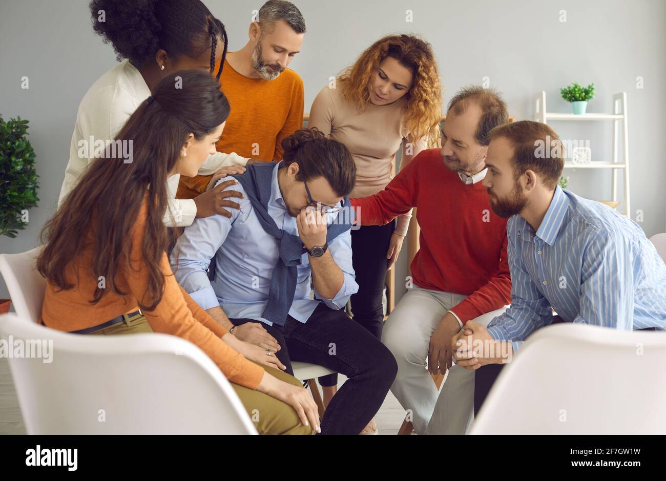 Gente Apoyando Y Consolando a Un Joven Llorando Durante Una Sesión ...