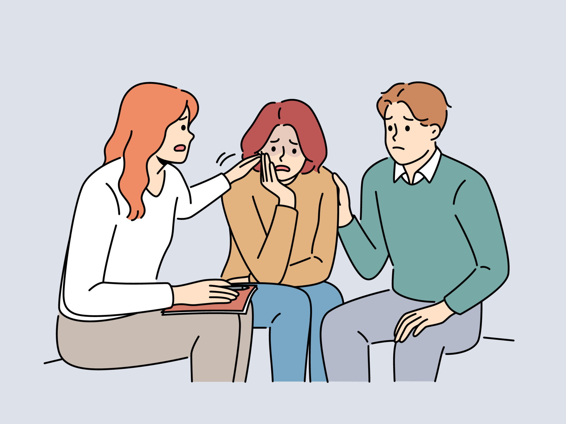 Grupo De Personas Llorando Reciben Ayuda Y Apoyo Ilustración del ...