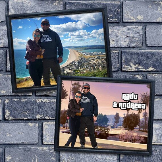 Retrato de estilo GTA V, regalo divertido, dibujo de personajes famosos del juego, regalo para él, retrato enmarcado de cuerpo completo, arte de jugador, regalo automático de Grand Theft - Etsy España