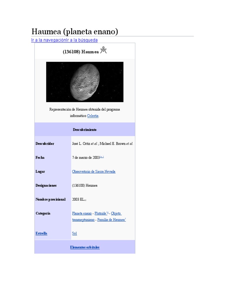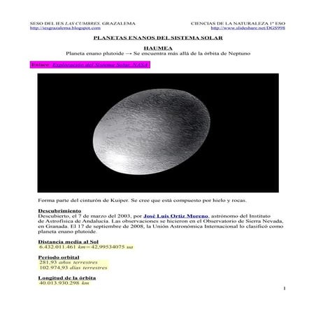 Planetas enanos del Sistema Solar. Haumea | PDF