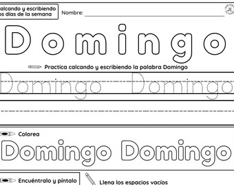 ESPAÑOL Días de la semana imprimibles, Trazado de días de la ...