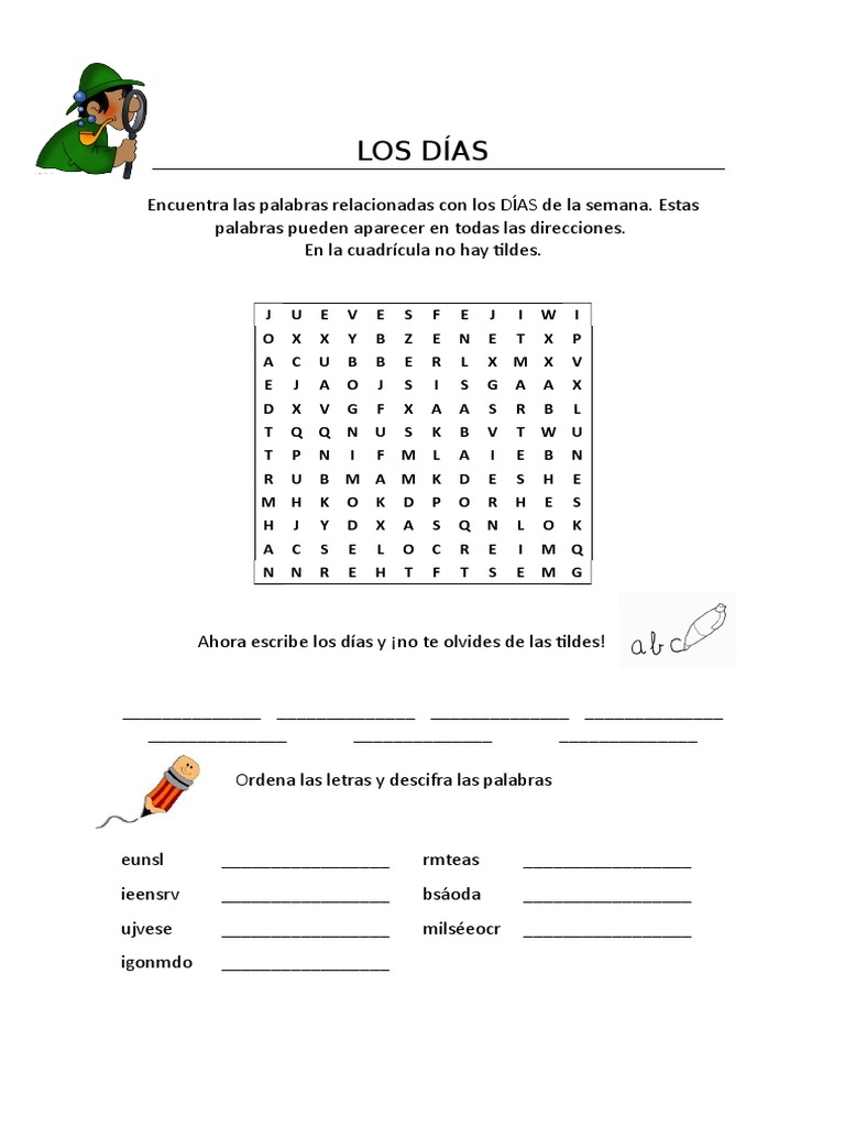 Los Días de la Semana en Español - Ejercicios en PDF - Spanish ...