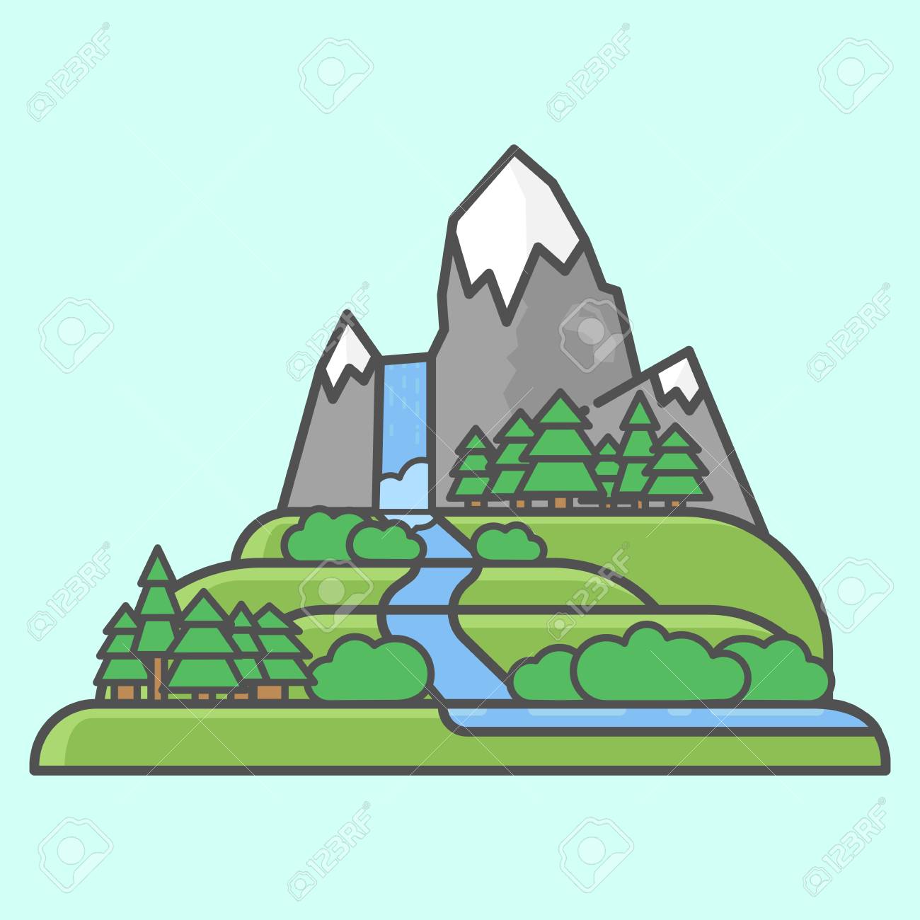 Icono De Línea Negra Para Dale Valley Y Cascada Ilustración del ...