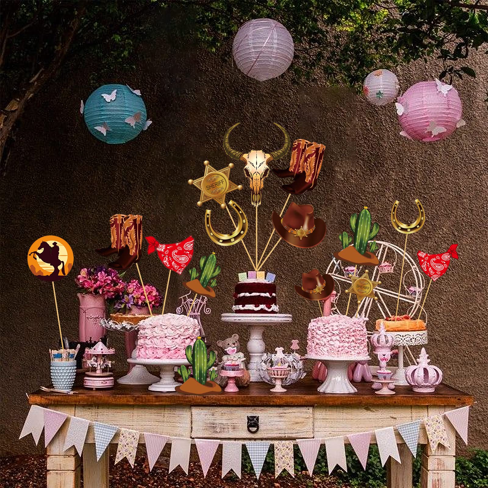 Amazon.com: 24 piezas de decoración de fiesta de vaquero occidental, suministros de fiesta de cumpleaños con temática occidental, decoración de centro ...