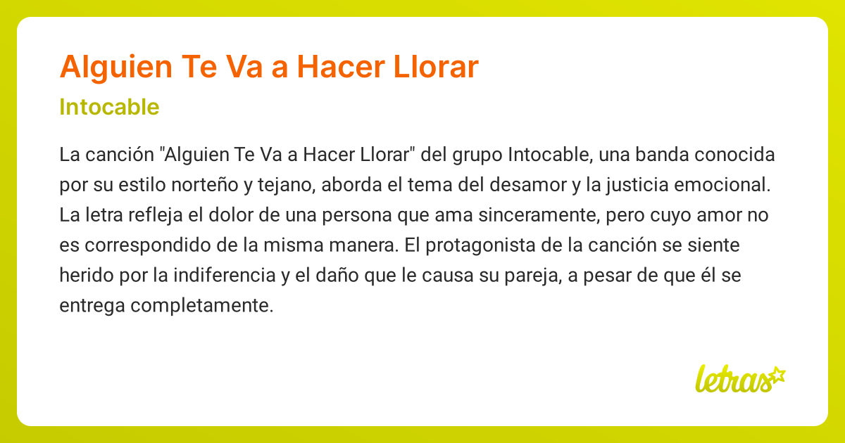 Significado de la canción ALGUIEN TE VA A HACER LLORAR (Intocable ...