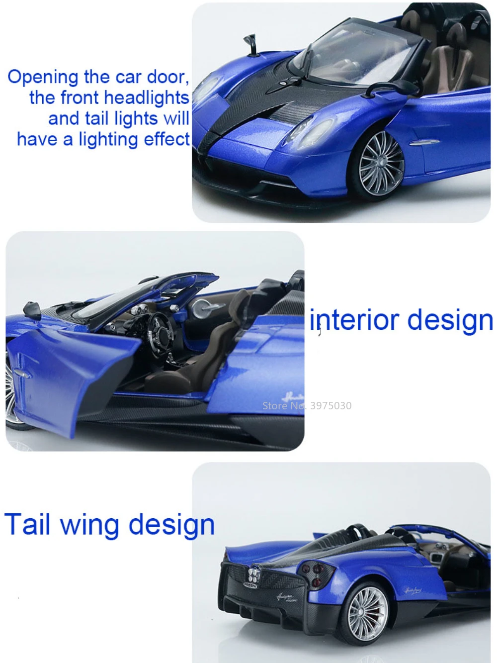 Pagani Huayra conversível carro esportivo modelo simulador de liga, veículo conversível com portas de som e luz, coleção aberta para meninos, escala 1:24 - AliExpress