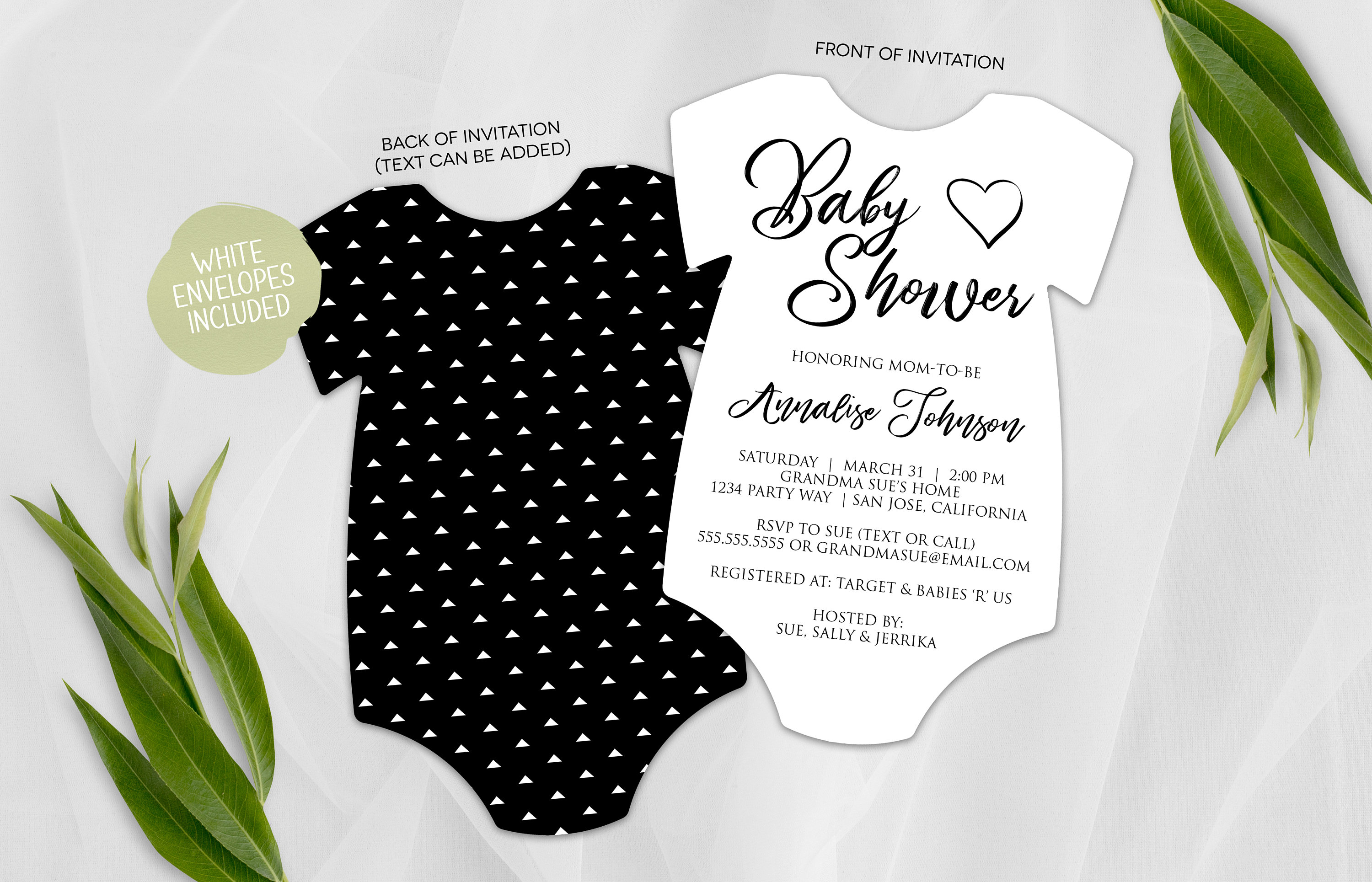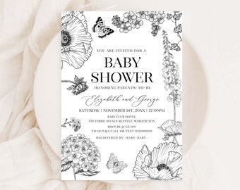 Invitación de baby shower en blanco y negro / Invitación simple a ...
