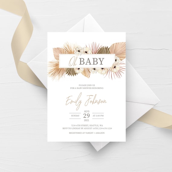 Plantilla imprimible de invitaciones de baby shower de Desert Boho ...