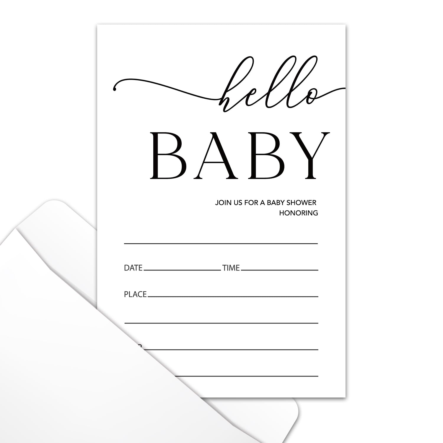 Hello Baby Shower - Invitaciones de fiesta con sobres, juego de 25, modernas invitaciones de relleno de doble cara en blanco y negro para revelación ...
