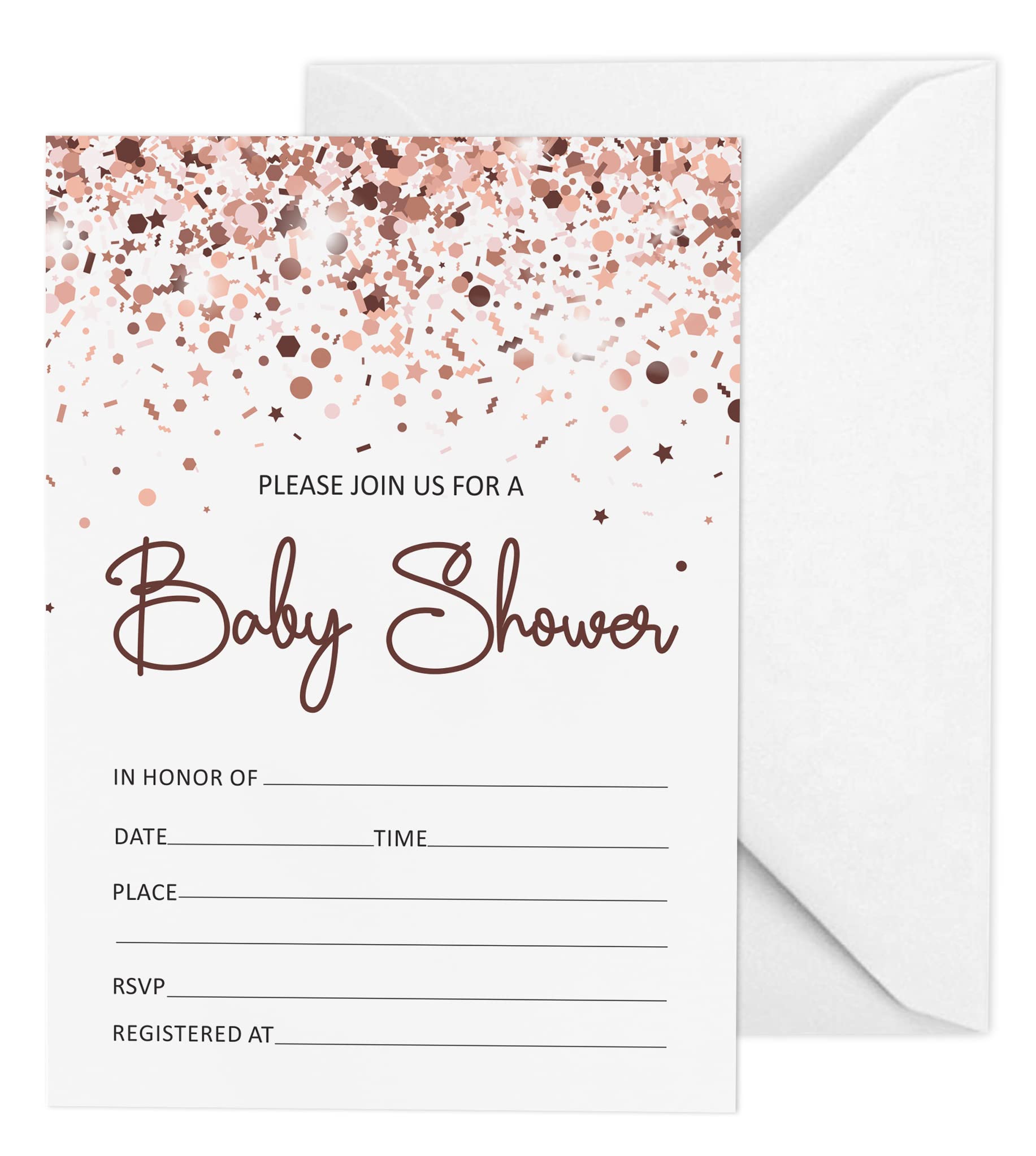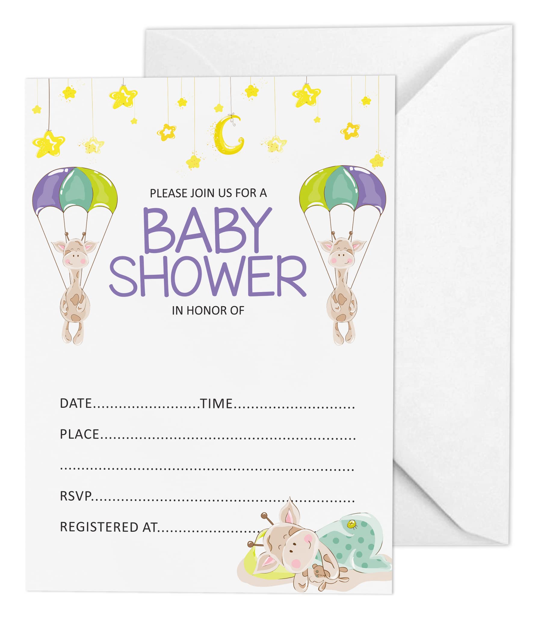 Invitaciones para baby shower, 25 tarjetas de invitación con sobres blancos, invitaciones planas de 5 x 7 pulgadas, tarjetas de fiesta de bebé, hechas ...