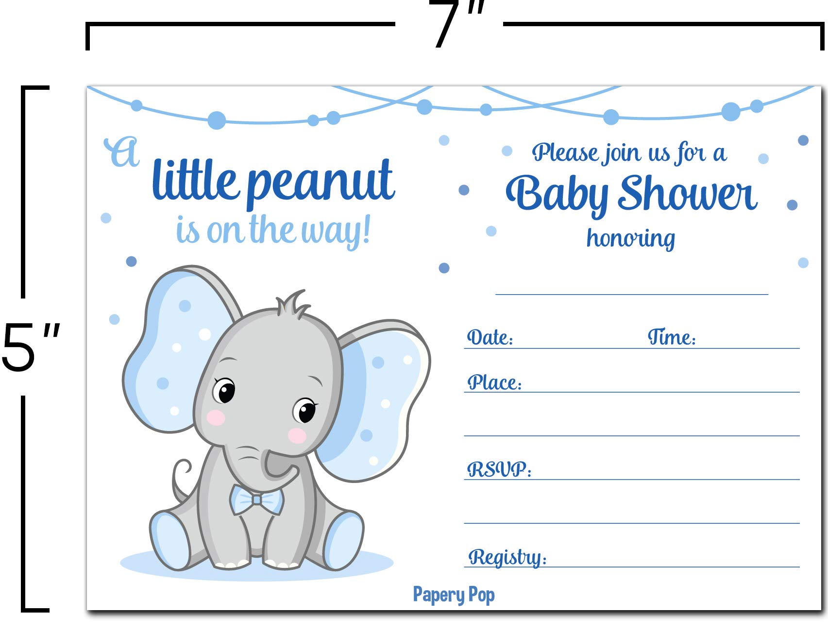 ¡Es un niño! - Invitaciones para baby shower de elefante para niño, paquete de 25 unidades, relleno en blanco Blue Peanut Baby Shower Invita, ...