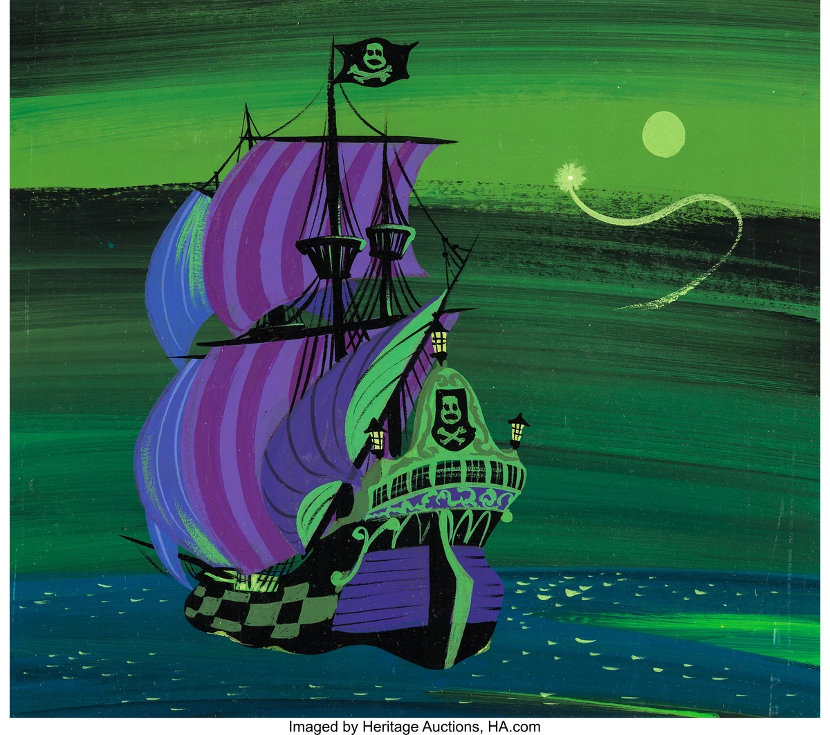 Mary Blair - concept art for the Jolly Roger from Peter Pan animated film (Disney 1953) - Mary Blair print. Captain Hook