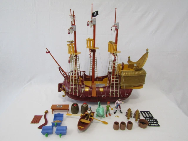 Rare Disney Peter Pan Pirate Ship Jolly Roger Captain Hook +extras ...