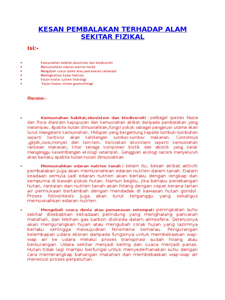 DOCX) Kesan Pembalakan Terhadap Alam Sekitar Fizikal - DOKUMEN.TIPS