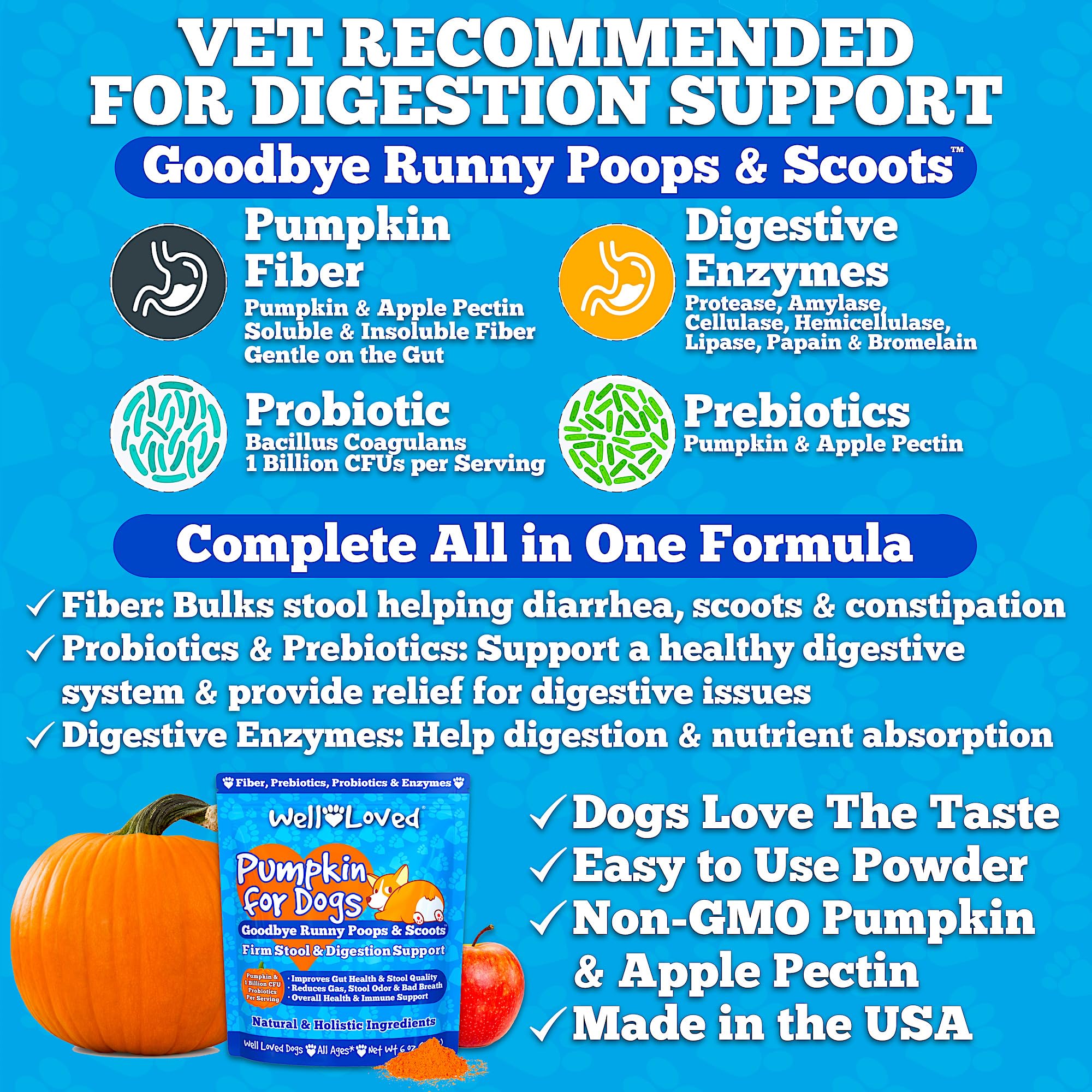 Polvo de calabaza para perros y gatos. Reafirma las heces, alivia la diarrea. Mezcla con agua para puré instantáneo. Sin desorden ni desperdicios de ...