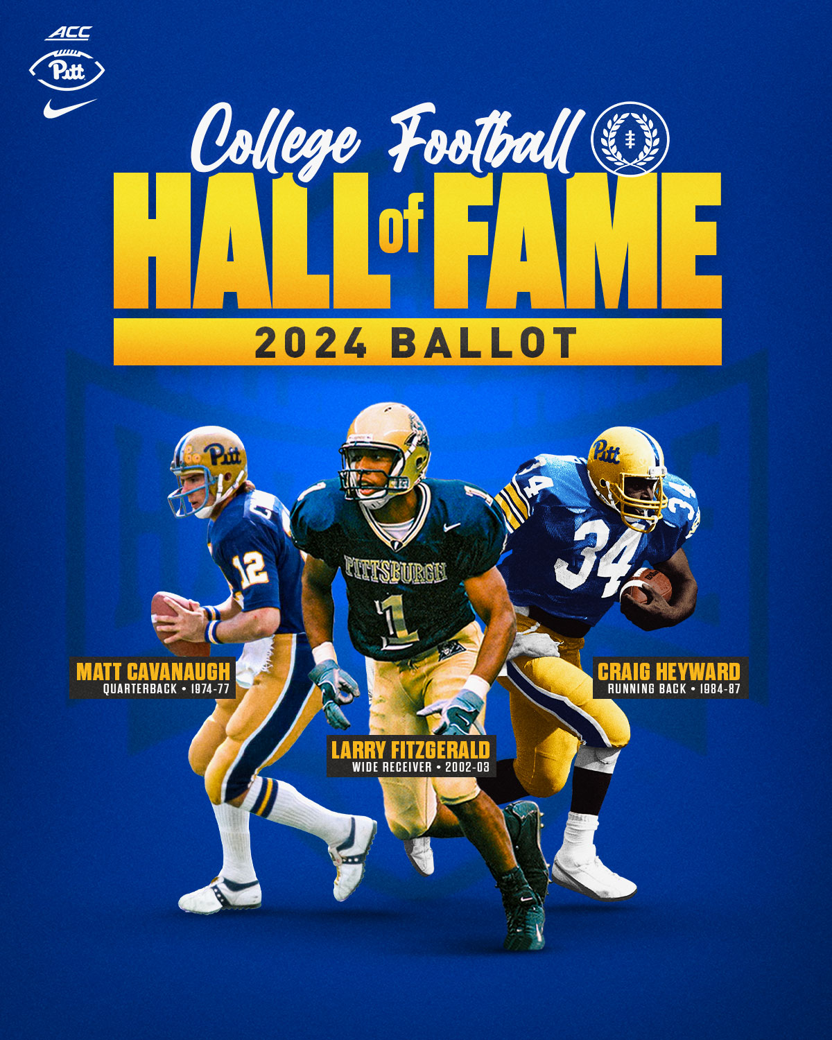 Pitt Football on X: "2024 College Football Hall of Fame ✨ @LarryFitzgerald debuts on the ballot ✍️ Pitt's 2003 Heisman Trophy finalist joins Matt Cavanaugh and Craig Heyward as HOF candidates this