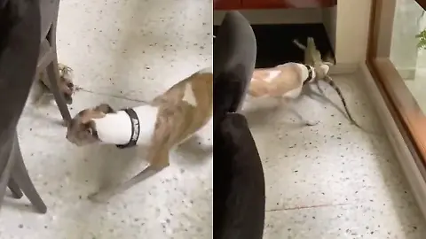 Iguana entra a una casa y se desata una feroz pelea con el perro ...