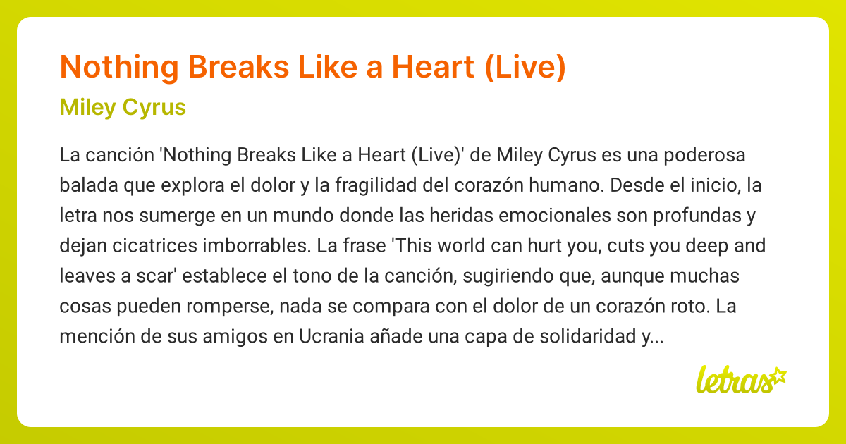 Significado de la canción Nothing Breaks Like a Heart (Live ...