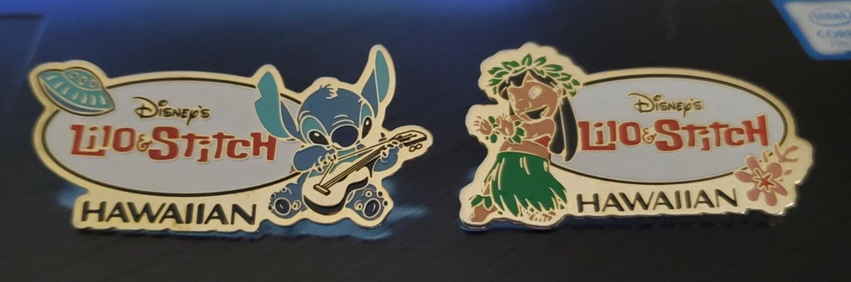 Disney Hawaiian Airlines Lilo Hula Dancing & Stitch Playing Ukulele LE Pin Set