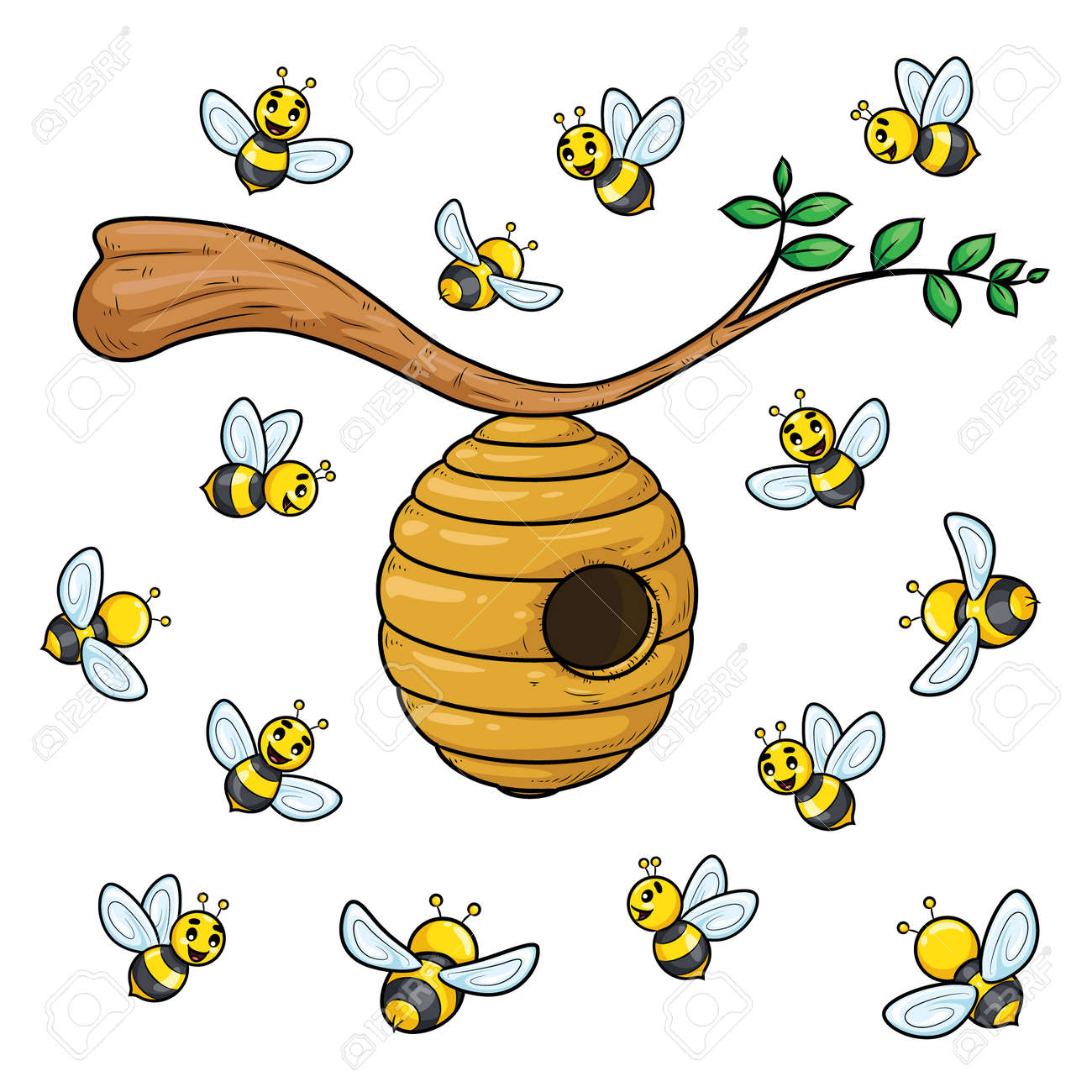 Ilustración De Dibujos Animados De Abejas Lindas Con Colmena ...