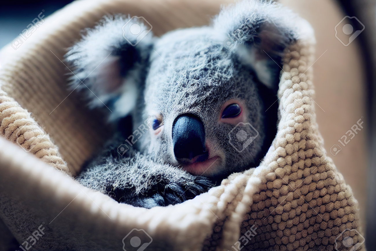 Lindo Bebé Koala Durmiendo En El Sofá Debajo De La Manta. Fotos ...