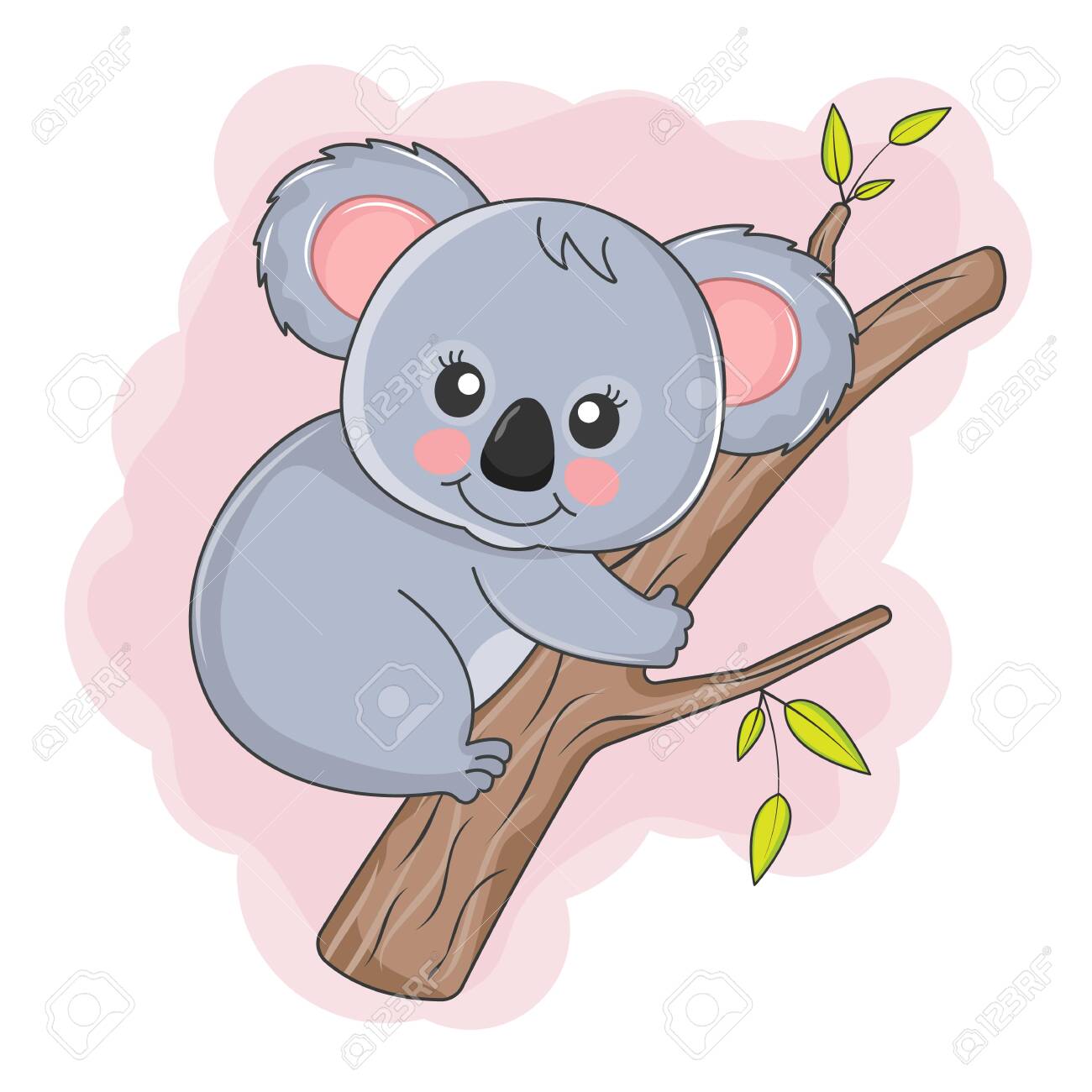 Acuarela lindo bebé koala en el árbol, Joey Lámina fotográfica