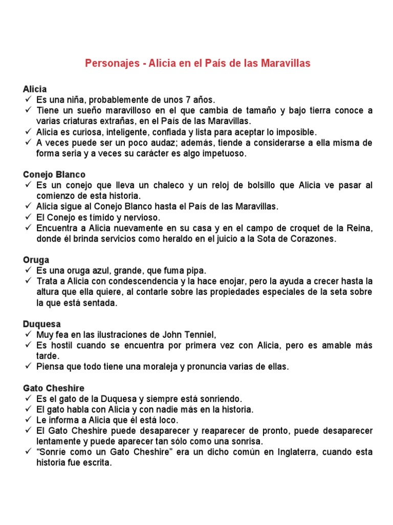 Personajes de Alicia en el País de las Maravillas | PDF ...