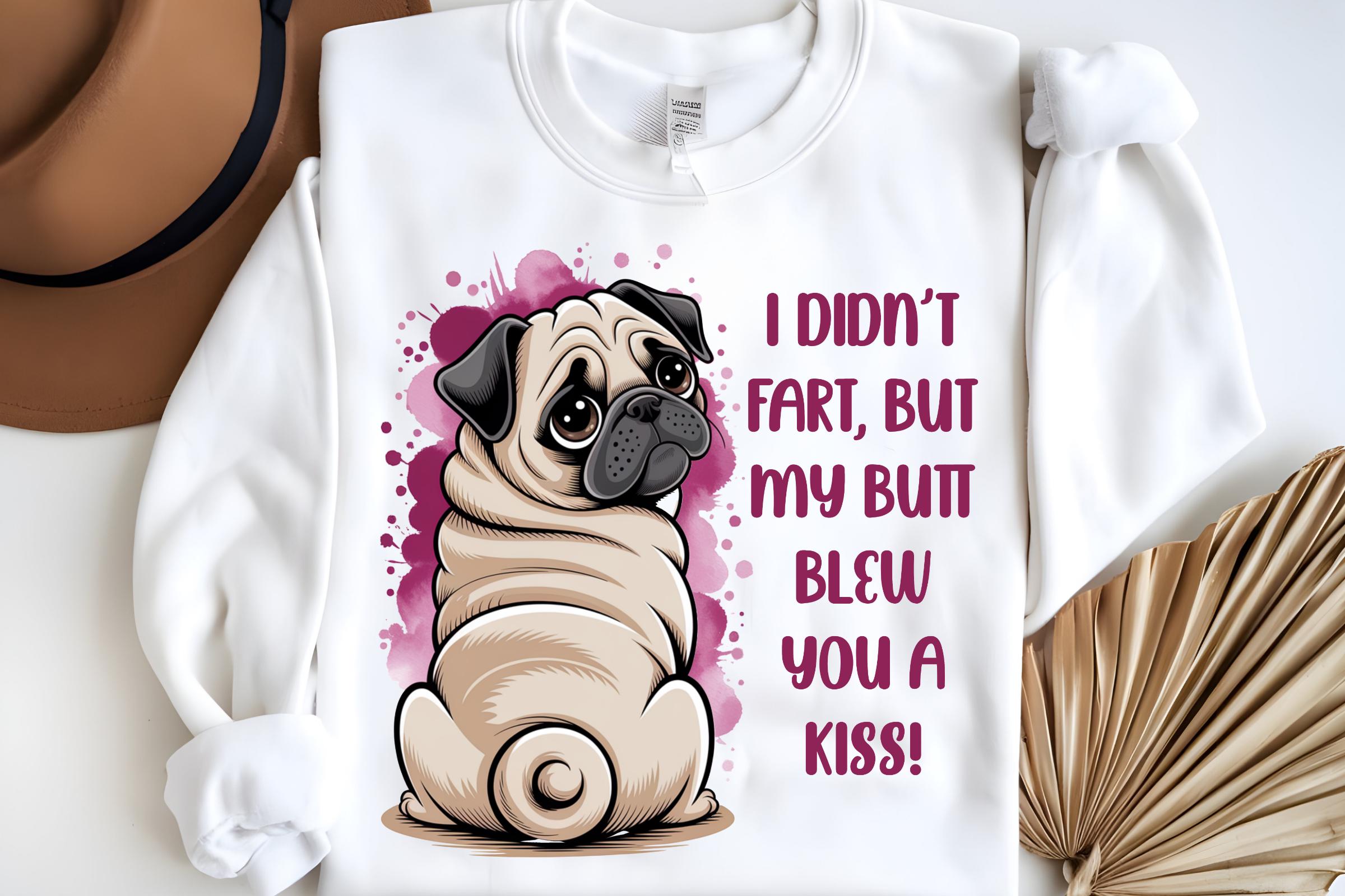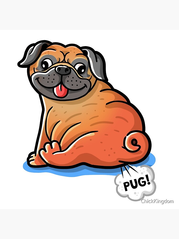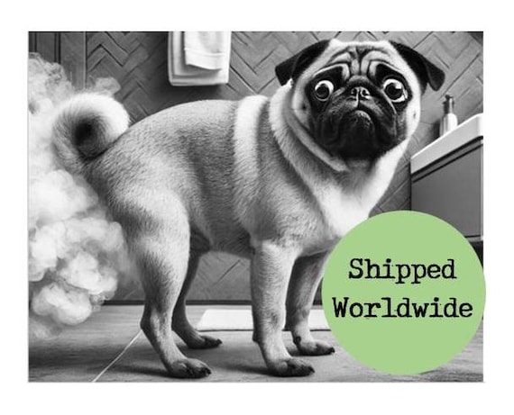 Impresión de pedos de Pug - Imagen divertida de perro - Animal en el baño Inodoro de abajo Baño Arte de pared Humor de inodoro Pedo de caca Letrero