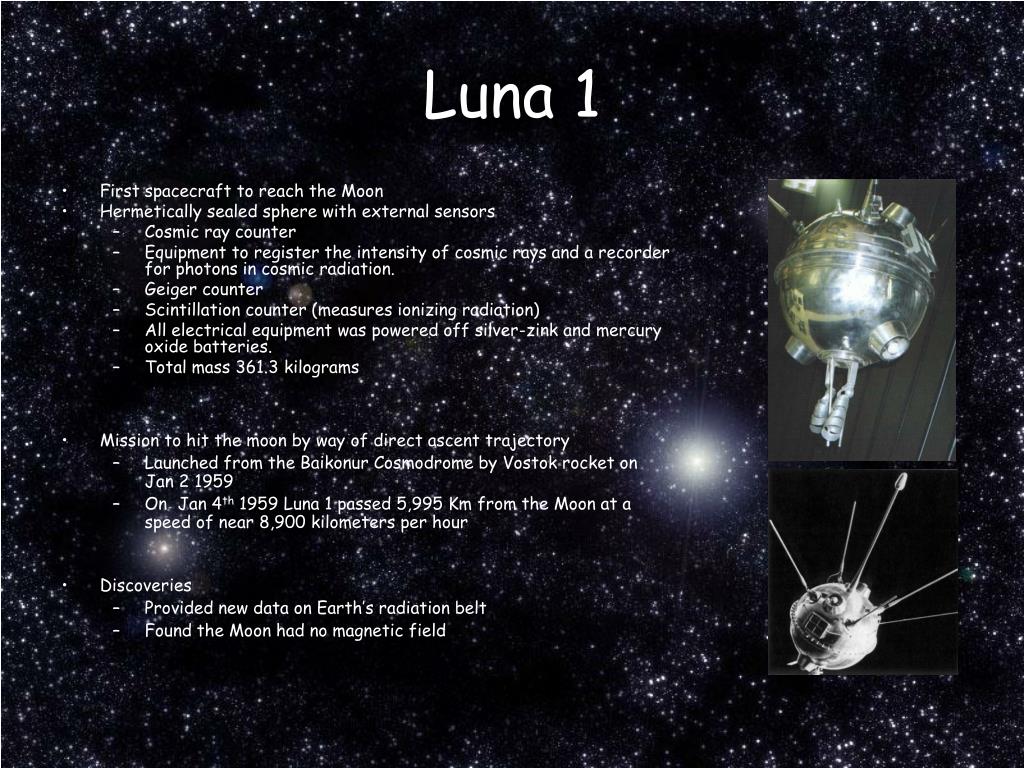 Generations of Soviet Lunar Spacecraft. Luna 1–2 impactors, Luna-3 ...