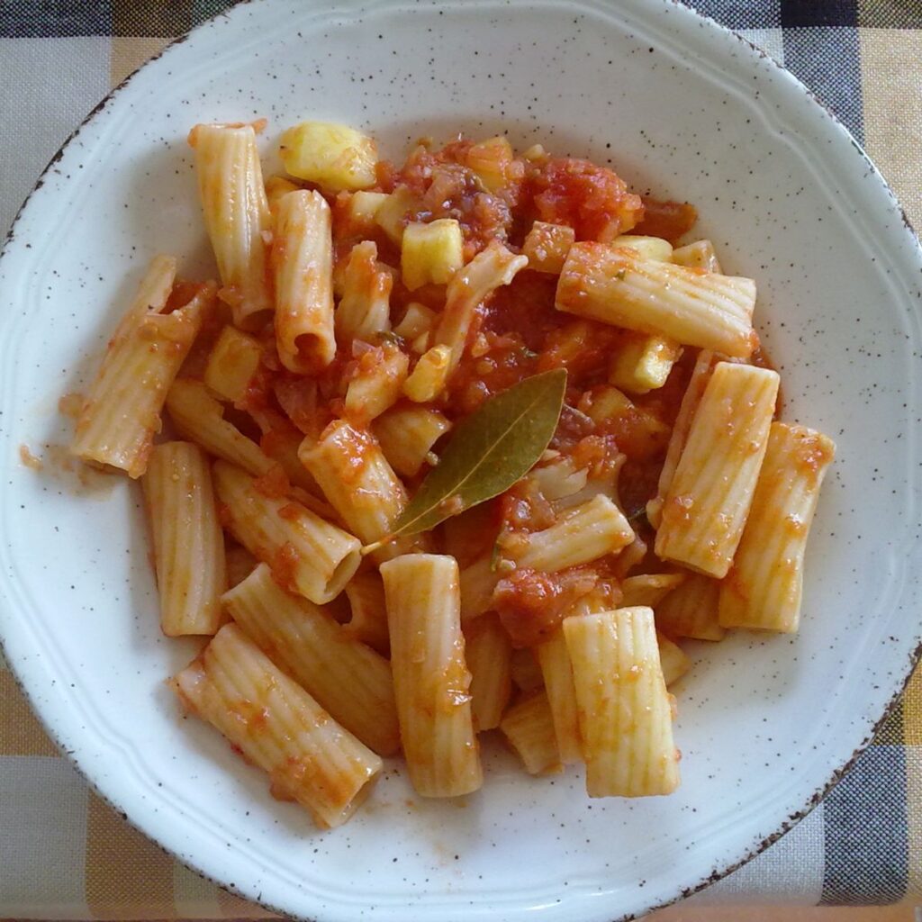 Macarrones con tomate y calabacín