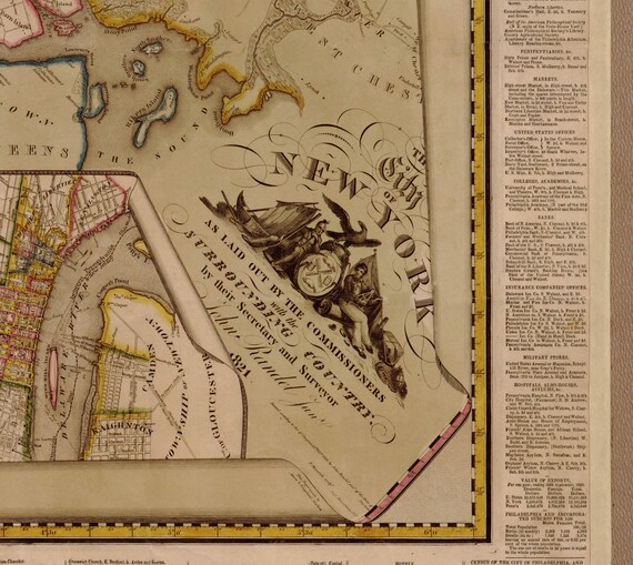 1821, mapa de la ciudad de Nueva York, mapa antiguo de la ciudad de Nueva York, producido a partir de un mapa antiguo, antiguo, antiguo. Río Hudson, Isla Rikers y más. -