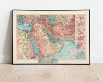 Mapa de Oriente Medio: Impresión de mapa de Oriente Medio vintage ...