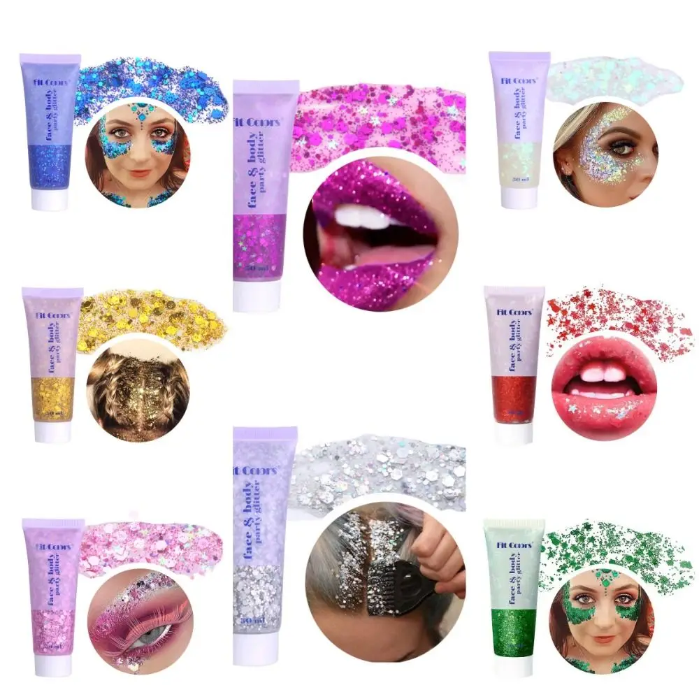 Maquillaje de ojos de escamas de pescado de colores brillantes para cara, cuerpo, labios, sombra de ojos, Gel de purpurina líquida, brillo de escenario, sombra de ojos