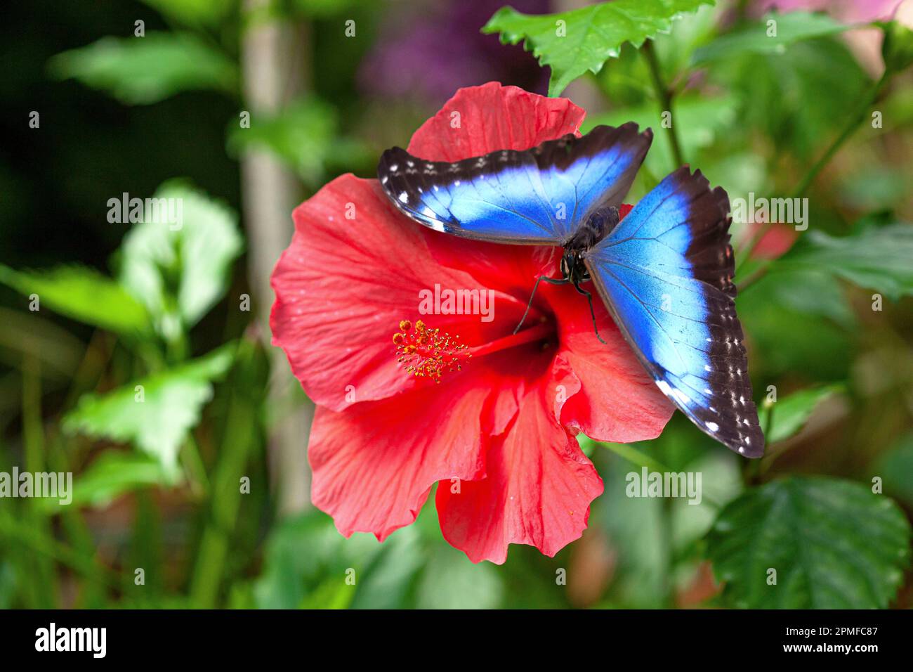 Mariposa Morfo Azul En Una Flor Foto de stock y más banco de ...