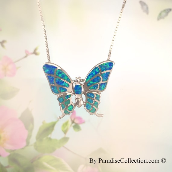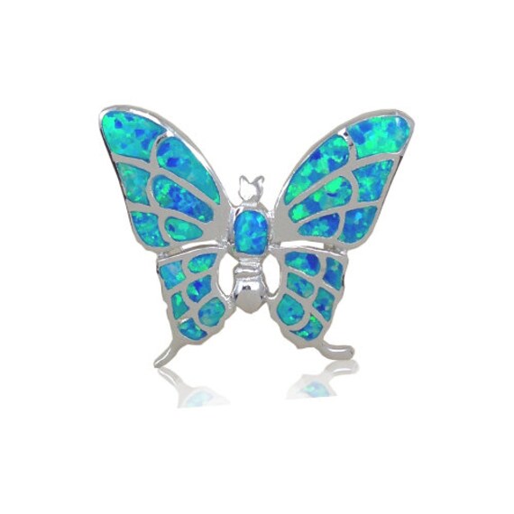Colgante de ópalo azul en forma de mariposa hawaiana de plata de ...