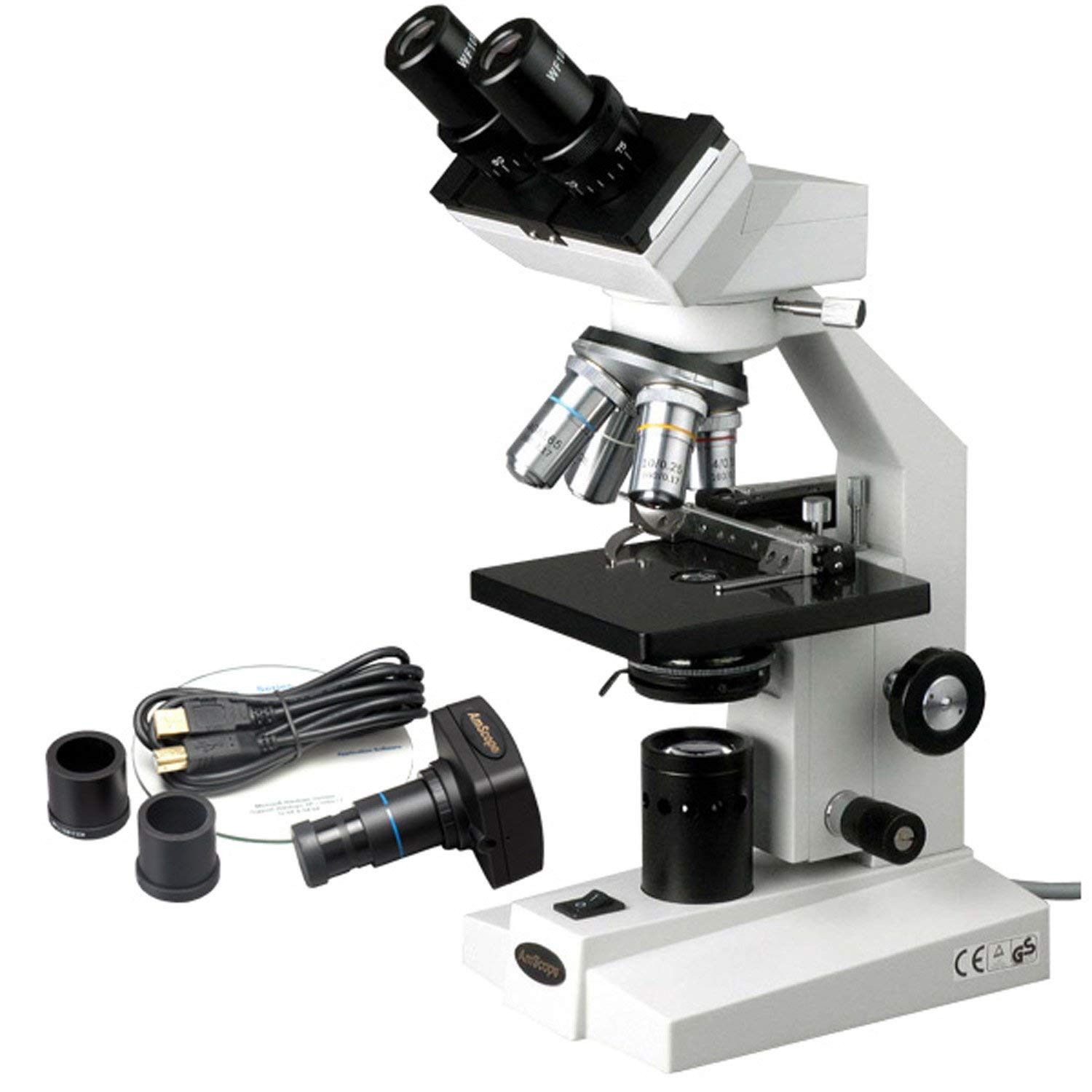 OMAX 40X-1000X Digital Lab LED Binocular Compound Microscope with Double Layer Mechanical Stage and USB Digital Camera