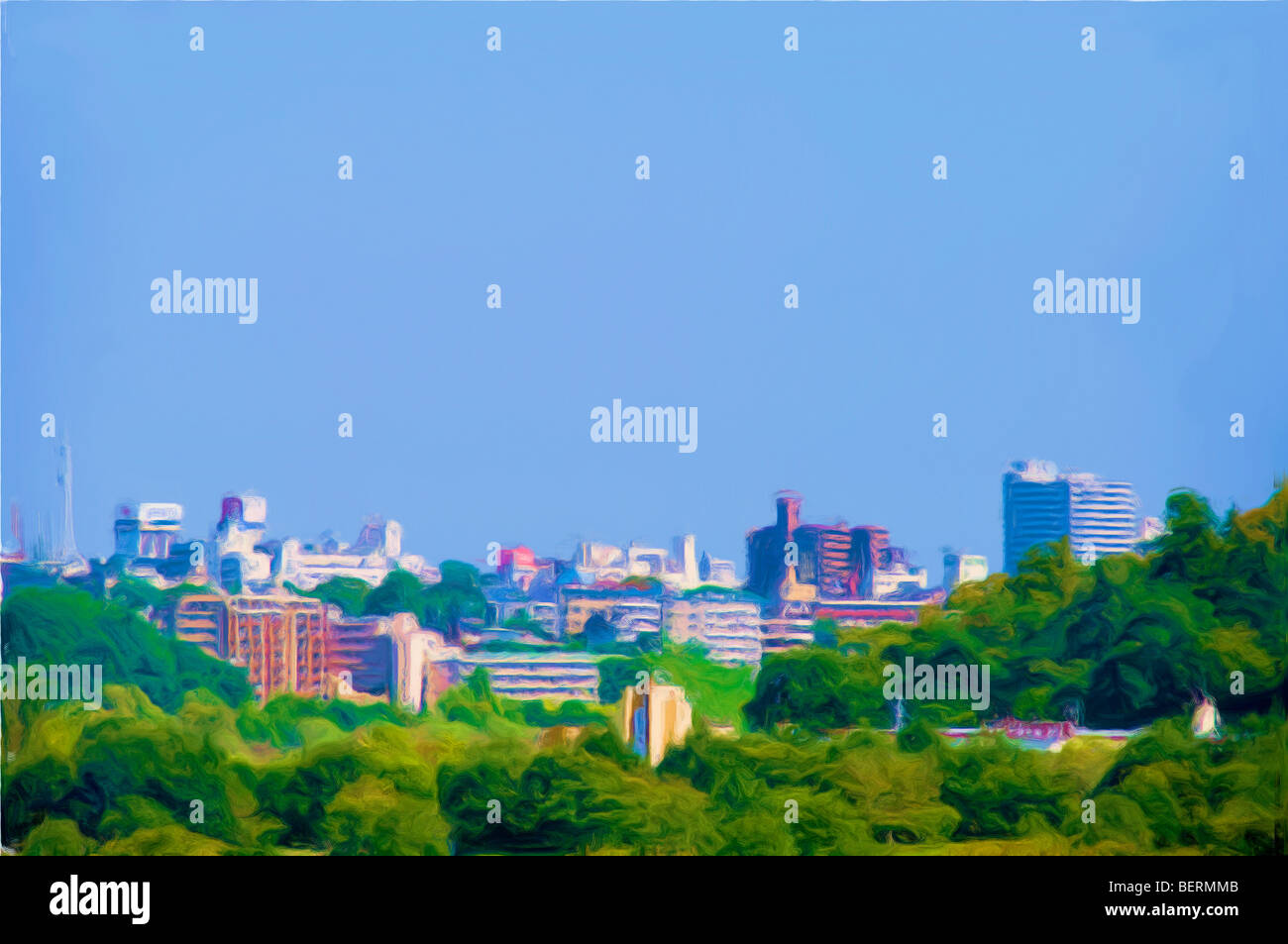 Painting of skyline, Mito city, Ibaraki Prefecture, Honshu, Japan ...
