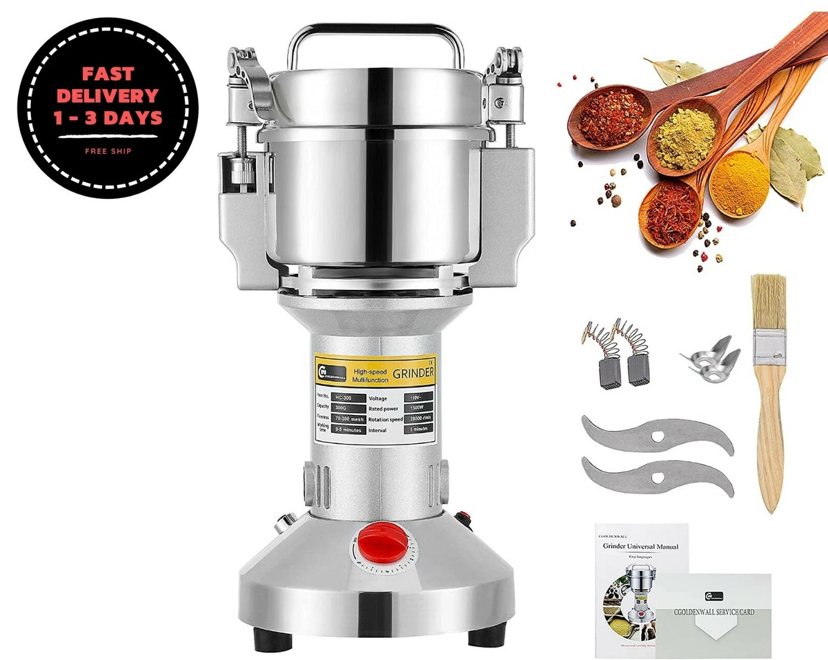 Molino eléctrico de grano molino, 3000 W 110 V, cereales secos arroz café trigo maíz molinos con embudo, molino de grano molino máquina de polvo