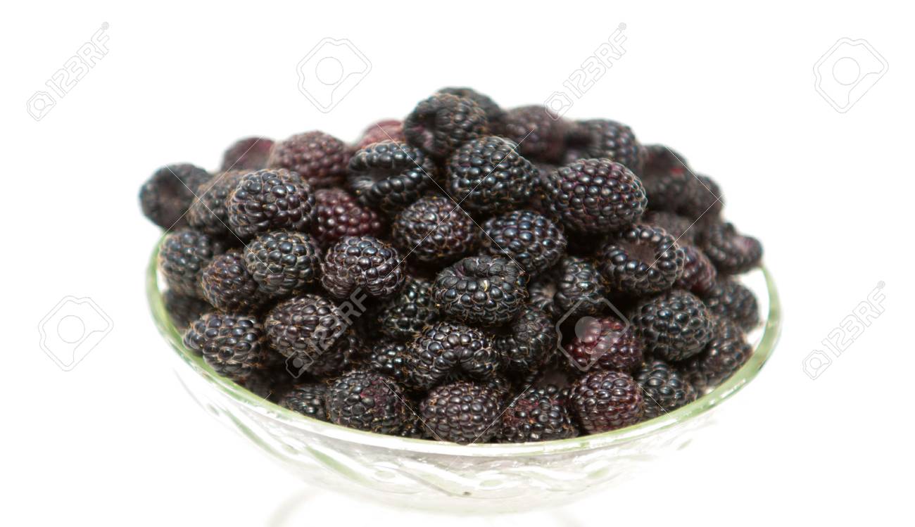 Frambuesas Negras. Mora De Frambuesa Negra Aislada En Blanco Como ...