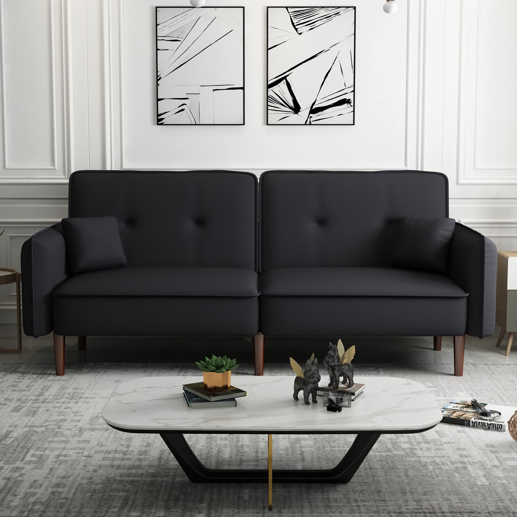 Amazon.com: Sofá moderno de tela con patas de madera maciza, acolchado de felpa, cama convertible para sala de estar, muebles de apartamento, lino ...