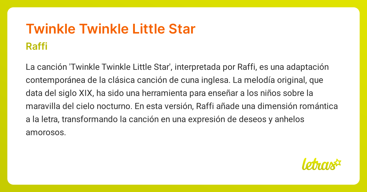 Significado de la canción TWINKLE TWINKLE LITTLE STAR (Raffi ...