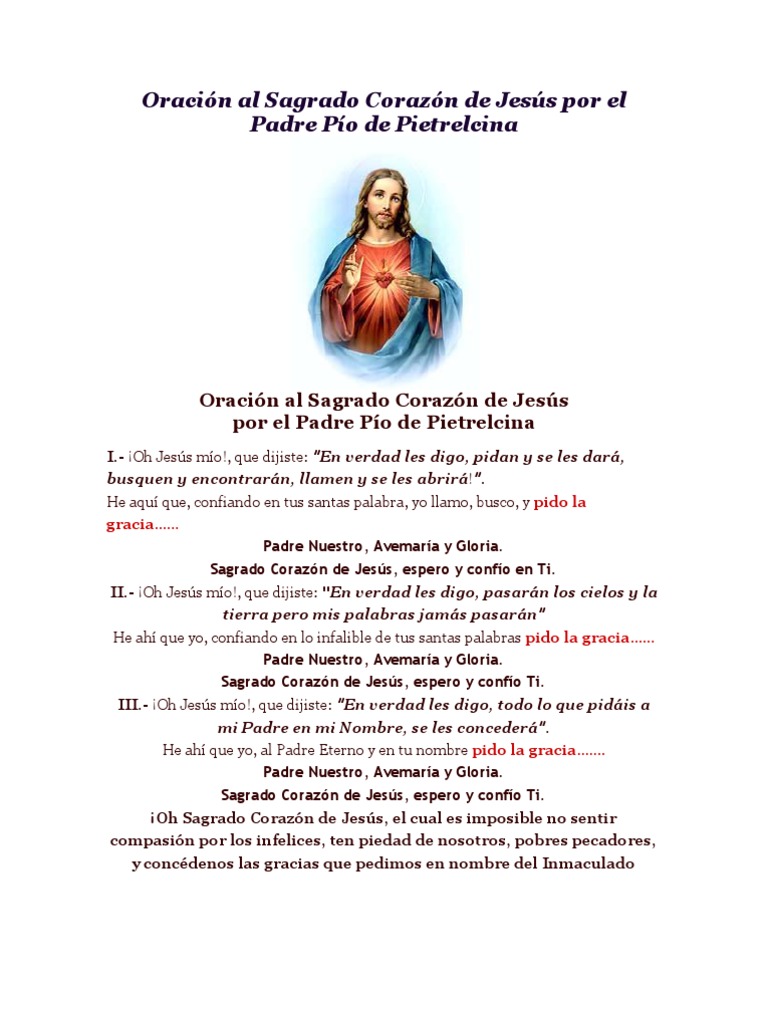 Oración Al Sagrado Corazón de Jesús Por El Padre Pío de ...