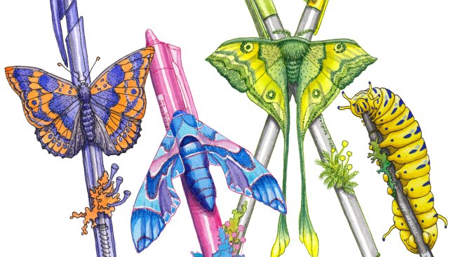 Cómo pintar mariposas, polillas y orugas - dibujo de tinta ...
