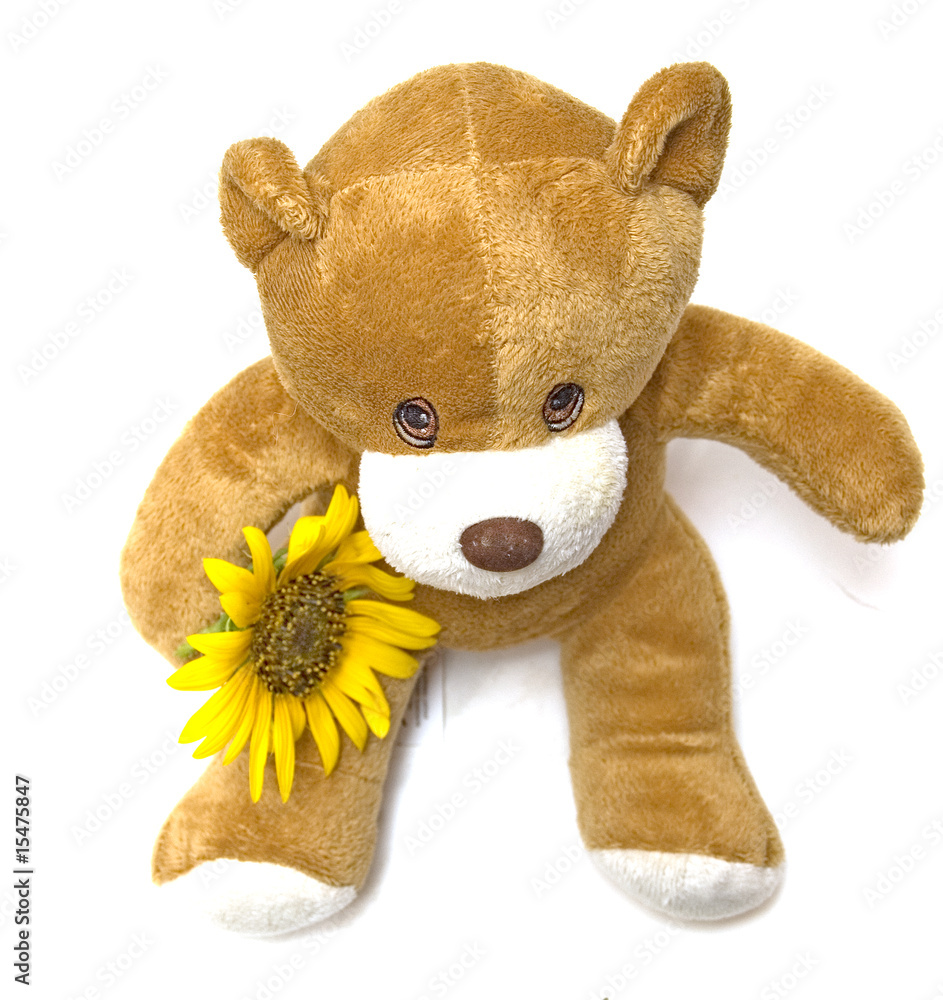 Osito adorable con girasol imagen de archivo. Imagen de suave - 552899