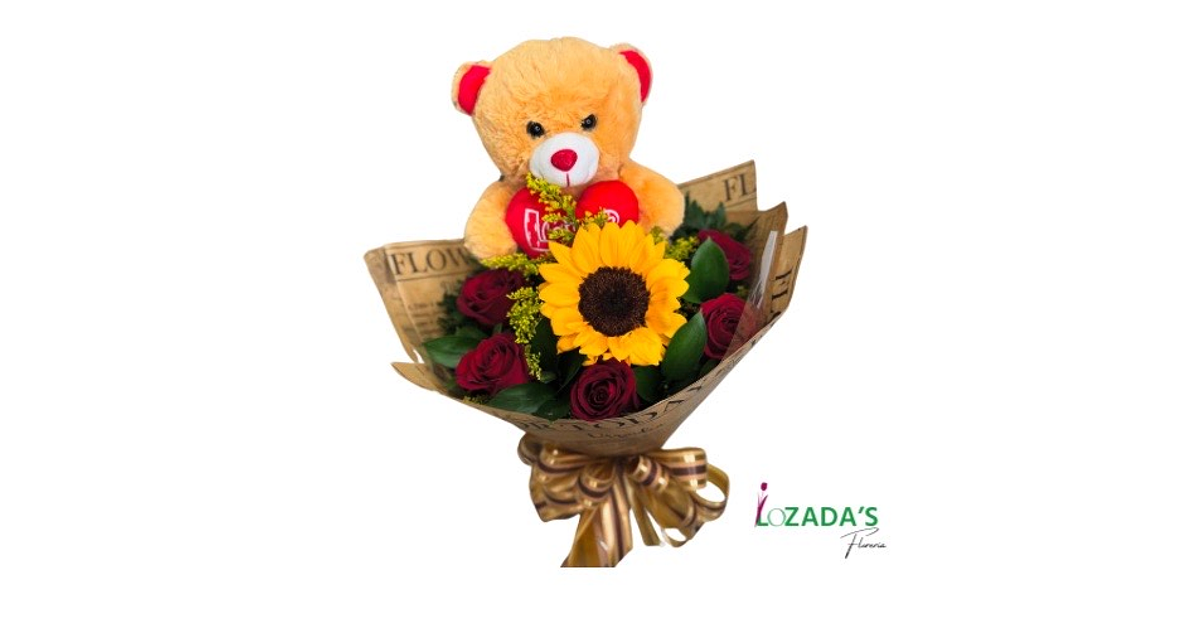 Ramo de Rosas y Girasol con Oso de Peluche - Entrega hoy mis