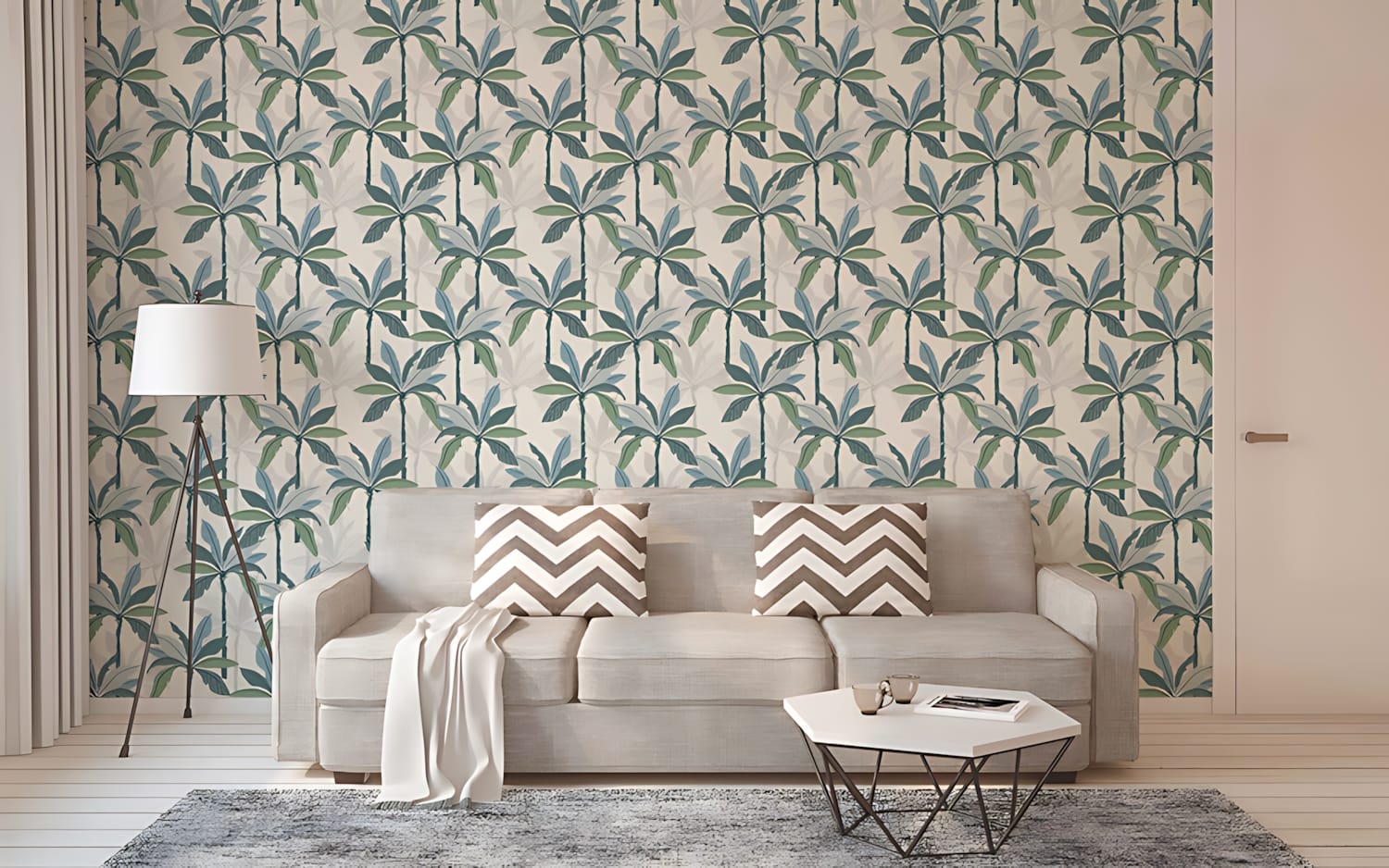 Papel Pintado Palmeras Hojas Azul Verdoso. Inspiración Tropical