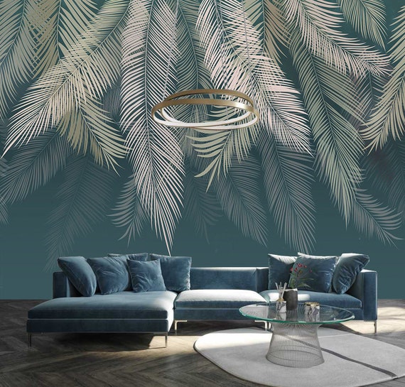 Hojas de palma Azul Verde Pared Fondo Niños Habitación Papel ...