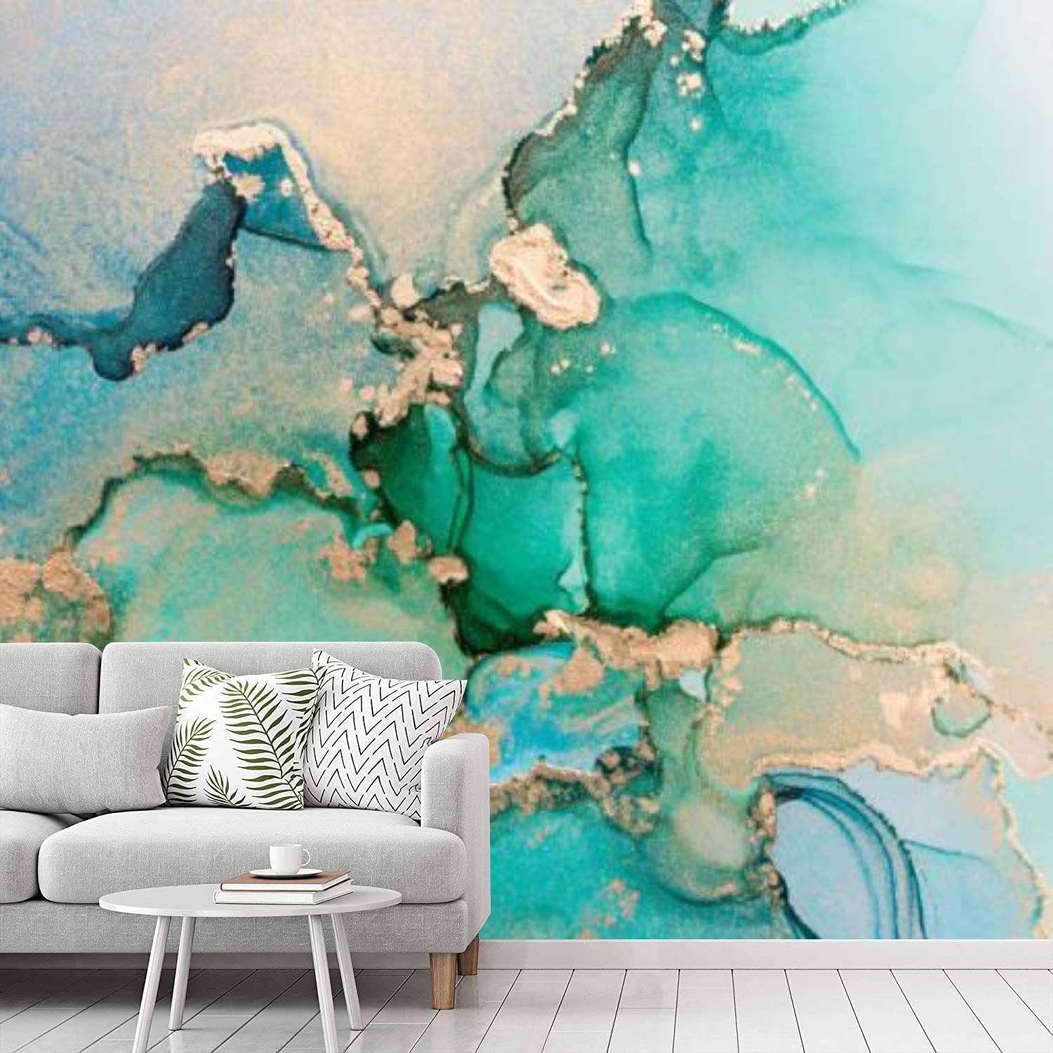 Amazon.com: Mural de pared de mármol azul, verde y dorado ...