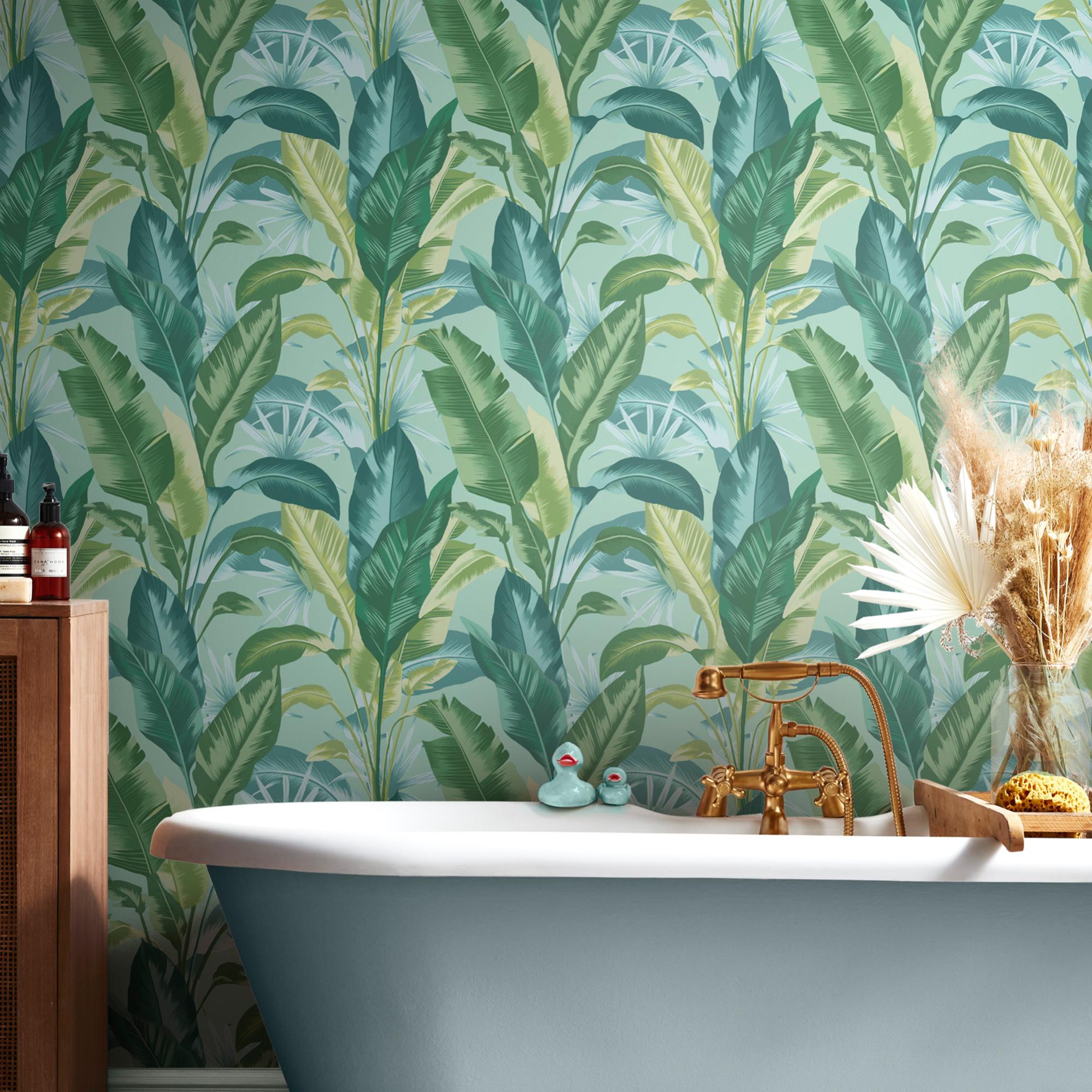 Papel pintado hojas tropicales azul verdoso | Papel Pintado Barcelona