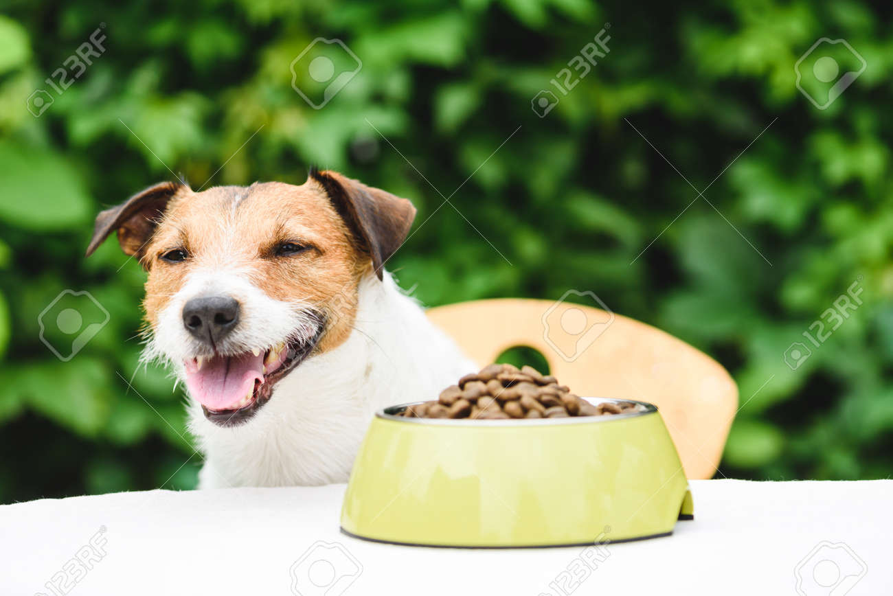 Perro Feliz Comiendo Comida Para Perros Croquetas De Gritar Fotos ...